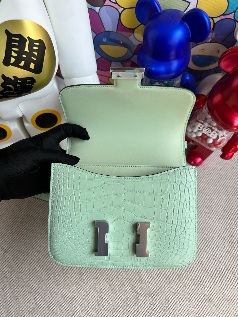 Uncle Bench Hermes Constance Alligator matt 6U Mint green Silver Hardware 18cm Full Handmade April 30, 2022 0 Uncle Bench Hermes Constance Constance 18CM Constance Alligator matt 6U Mint green Silver Hardware 18cm Full Handmade